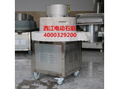 米粉电动石磨机西江磨温低不死浆,西江电动石磨米粉电动石磨机选用的石材均出自“石材之乡”云浮石山上的天然麻石,经国家食品安全部门鉴定,为一种零放射性、具有一定生物活性的复合矿物质,对人体有益;且使用十分方便,家用220V电源插电即可使用。在倒入豆子或大米时,需加入适当清水,添加材料速度要均匀。定期升起磨盘进行清洗,不使用时需于干燥通风处停放。
