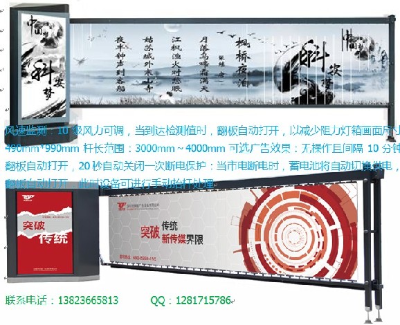 深圳智能遥控道闸 本公司推出的智能遥控道闸属于道闸,主要销售对象是停车场、汽车店。请务必注意使用的场所,务必小心用电,以免造成机器损坏,或者引起其他事故。智能遥控道闸拥有智能遥控器,直杆的配置,是同种智能设施里较为高端的产品,深受全国区域客户的喜爱。路安交通设备还为客户提供了一年免费,终身服务的售后服务,如果遇到任何问题都可以与我们取得联系,我们会在第一时间为您解决。 以下的,厂家直销广告道闸,广告道闸生产制造,浙江广告道闸信息应该对您有用 智能遥控道闸具有挡车,遥控收费,宣传广告,智能化管理停车的功能,本品设计为支持汉语,服务地区覆盖全国。本公司为这项产品设计了详细的售后服务措施,为广大用户提供优质服务。 二十一世纪什么最贵?人才!二十一世纪的人才都在干嘛?搞高科技!深圳市路安交通设备有限公司招揽、培养了许多高科技人才,在他们的不懈钻研之下,推出了服务于停车场、汽车店的智能遥控道闸。必定,又是一个引领潮流的东东。 厂家直销广告道闸,厂家直销宣传海报道闸,停车场道闸生产厂家,金华停车场道闸 以下内容仅作为参考数据,以实际为准。 型号:LA-道闸 规格:25*48*1000 智能遥控道闸品牌:LAJT 开发公司:SZ-LAJT公司 颜色:橙色;黄色;灰色;银色 付款方式:银行转账;在线支付;现金支付;现金交易 销售方式:批发;零售;直销;网上销售 售后维修地区:全国 价格:商议 产品名称:智能遥控道闸 类型:道闸 售后服务:一年免费,终身服务 配置:智能遥控器,直杆 深圳市路安交通设备有限公司经过多年的钻研,终于推出了振动市场的智能遥控道闸。希望这一产品能够给广大停车场、汽车店带去方便,节约大家的时间。详情请浏览我们的网站。 想了解更详细内容,可登录深圳市路安交通设备有限公司网站对品牌停车场道闸,停车场道闸生产制造,广告道闸生产厂家www.zhiangangtingchang.com进行了解