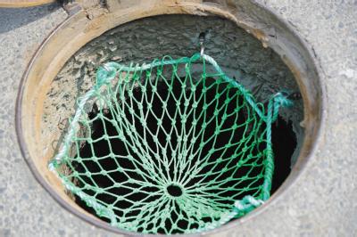 用于市政井、电力井、通讯井、 自来水井、检查井、 燃气井 污水井特制的井盖防护网 井盖防坠网 井盖防护安全网,---由护网和固定钩组成,护网由若干条尼龙绳编织而成,呈蜘蛛网结构,安装起来快捷又方便。目前,这种防护网已被大量采用。