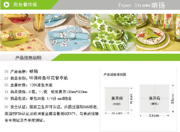 产品系列:纸吸管/纸杯/纸盘/纸袋/彩色餐巾纸。