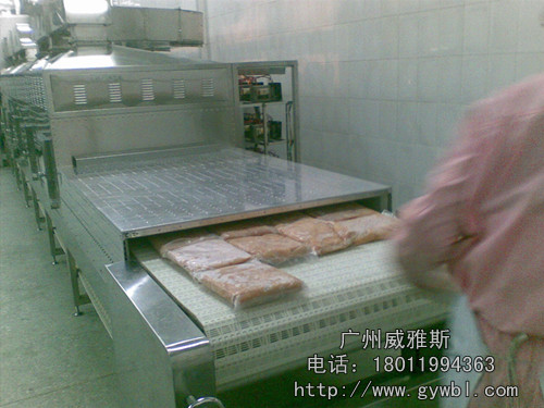 这种微波解冻机通常应用在冻品配送中心,当酒店、餐厅为当天菜式准备食材时,配送中心可以将深度冷冻的冻肉进行微波快速解冻,再进行配送。微波解冻机的特点就是肉损率低,解冻快速,对食品的口感、味道和色泽影响低。