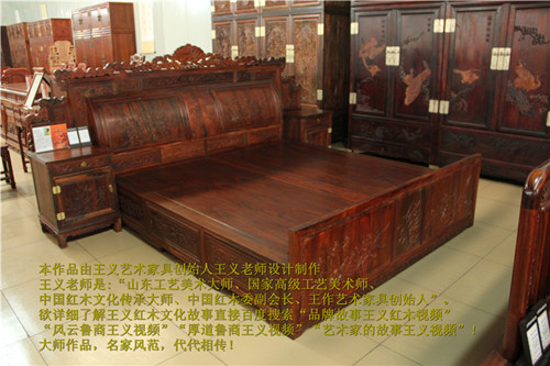 王义家具的宣传口号:弘扬民族文化只做艺术品,只让极少数人拥有,先给真正成功的人,献给高品味的人。