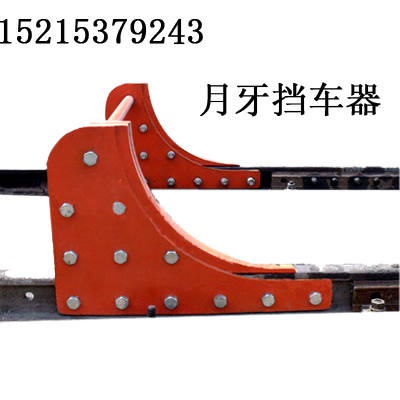 月牙挡车器为低速挡车器,无缓冲装置挡车时为刚性接触,靠挡车器和钢轨弹性变形吸收车辆制动功,挡住车辆。