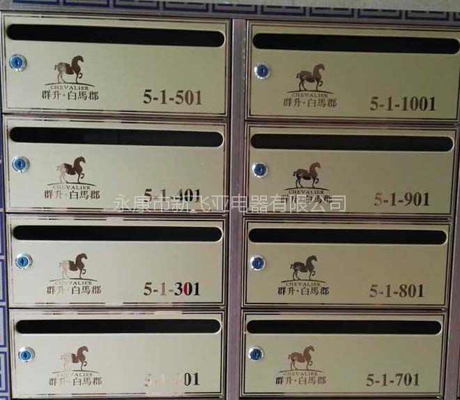 永康群升房产集团白马郡大盘不锈钢信报箱永康新飞亚信报箱真诚呈献选材优质:304 防古铜拉丝不锈钢