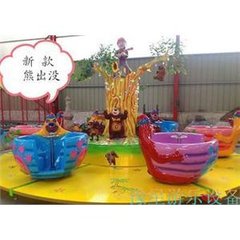 以熊出没为主题的熊抱罐旋转咖啡杯游乐设备上市了。豫星熊抱罐咖啡杯介绍:该产品是 根据最新动画片熊出没为设计题材,经过不断地改良设计加工,而推出的新款,主干以树为中心,四周分布着造型各异的熊大和熊二两兄弟,座舱呈杯子形,有可爱的熊兄弟抱着,配有方向盘,安全带,是亲子互动的最佳选择,树顶有持枪警戒的光头强,随时准备砍树,漂亮又形象,给人身临其境的感觉。可爱憨厚的熊大和熊二,一心砍树的光头强,他们之间即将上演一出激烈的人熊之间的森林斗争,斗智斗勇,你争我抢。最后谁会胜出,需要你的亲自体验。上面装有华丽的彩灯围绕这树杆配有奇妙的音乐是不错的投资产品欢迎到厂家来参观订购.