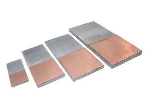 独创专利技术生产的铜铝复合材料:板、带、箔,主要参数:厚度0.1-14mm,宽度600-1000mm。在高温真空高压下解决了铝的氧化和铜铝共晶反应等主要技术瓶颈,铜铝之间冶金复合无非金属介质,结合了纯铜和纯铝的导电和导热性能,产品分为导电类,导热类,装饰类和深冲类4大系列。主要产品有铜铝复合板、带、 箔, 铜铝复合排、 铜铝过渡板、 铜铝过渡排、铜铝复合垫片、COB封装铜铝复合金属基板,铜铝复合 铜门料、幕墙板,铜铝复合餐具料等。