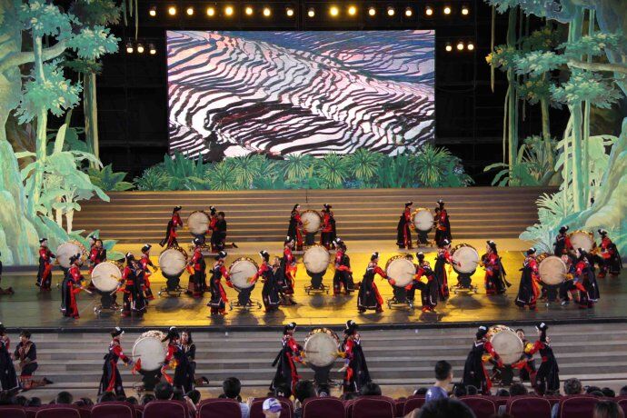 我团新作 《彝族神鼓》: 舞步丰富多彩,鼓声悦耳 , 舞姿优美 , 服饰精致。 将原生态山歌加入鼓阵,应答有致,精彩纷呈。于2015年南宁鼓乐邀请赛中荣获二等奖。室外表演瞬间凝聚人气 , 室内演出气势雄浑。 欢迎新老朋友预定。网站:www.gdyanchu.com