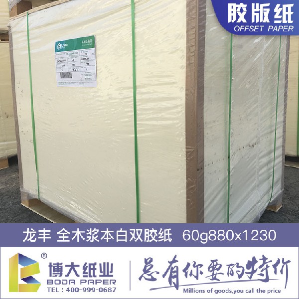 博大纸业专业供应60g龙丰本白双胶纸880*1230