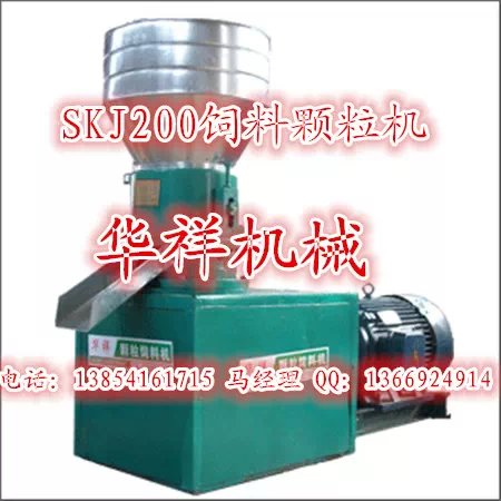 华祥SKJ120、150、200、250、320型颗粒机是养鸡,鸭,鱼,虾,兔,猪,羊,牛,畜,禽,水产类等饲料加工必备的最理想设备,该机吸取国内外饲料机之精华,“心脏部件”——摸板,压轮(比一般饲料颗粒机寿命长5—7倍,保证个体户生产数万公斤以上),该机采用汽车差速。万向节传动,机械性能更加可靠,是国内首选产品。操作方便,噪音小,不加水,颗粒坚硬,光洁,干进干出,各类秸杆粉碎后,用量占65%以上,玉米,大小麦,稻谷等籽颗粒粉碎后可直接加工,颗粒含水量低,含水量均为国家粮食储藏标准,生产过程中能使饲料熟化,既能提高营养成分吸收效率,又能杀死一般致病微生物寄生虫。是国内干进干出新一代产品。该产品适合饲料厂,个体专业饲料加工户,是投资小,见效快,无风险的加工机械。