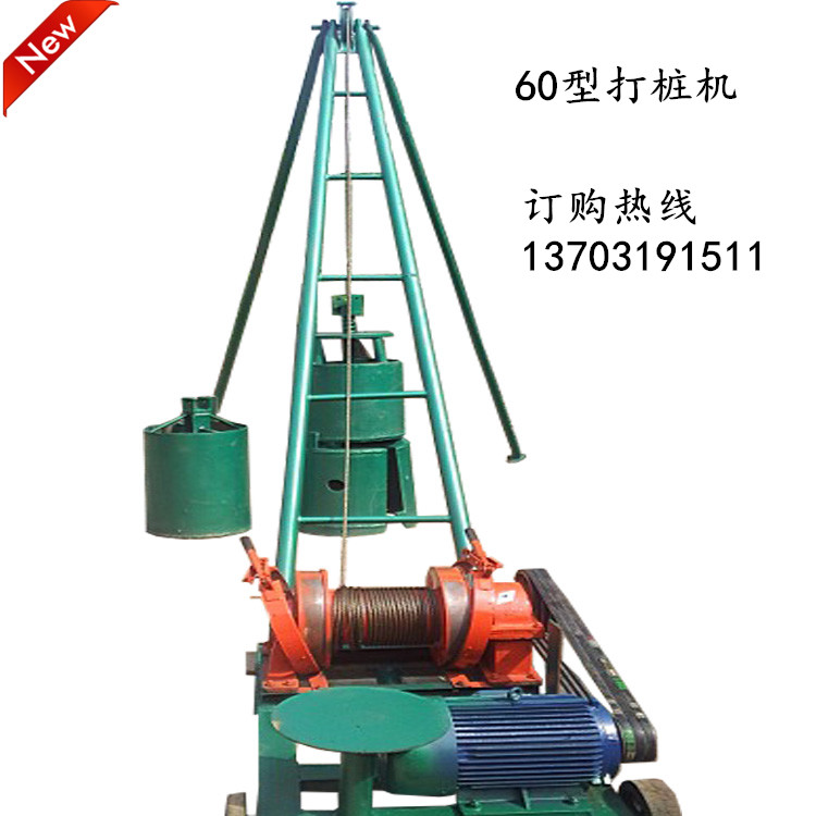 地基打桩机、电动洛阳铲主要技术参数【详情可拨打电话了解13703191511】 本实用新型打桩机是一种建筑用地基打桩机,解决现有技术中打桩机体积大、笨重,无法在面积窄小的地盘施工的问题,它包括桩架,桩头和桩墩。具有体积小,重量轻,操作简单,施工方便,打出的桩孔质量好的优点。打旱井下管,打桩眼,电线杆坑,渗水井.深水井、岩石井、降水井