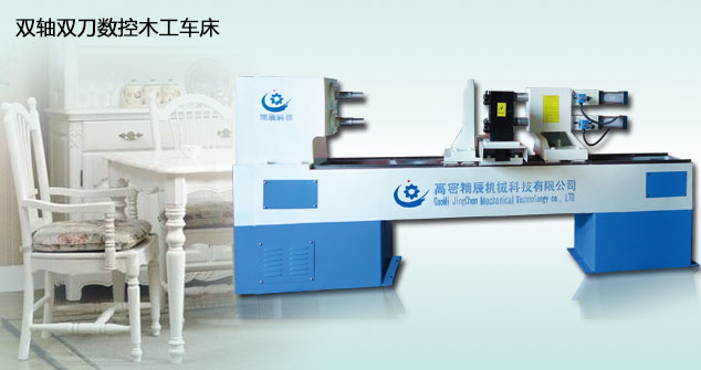 精辰双轴单刀数控木工车床:适用于实木家具、实木楼梯、实木衣架、家装、木工装饰、木制工艺品等行业。
