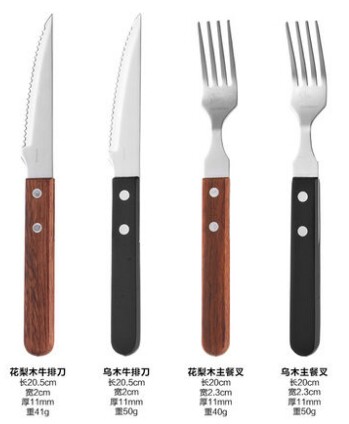 厂家直销 复古式木柄不锈钢餐具 高档西餐刀叉勺 牛扒刀叉
