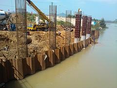 拉森钢板桩作为一种新型建材,在建桥围堰、大型管道铺设、临时沟渠开挖时作挡土、挡水、挡沙墙;在码头、卸货场作护墙、挡土墙、堤防护岸等,工程上发挥重要作用。拉森钢板桩做围堰不仅绿色、环保而且施工速度快、施工费用低,具有很好的防水功能。