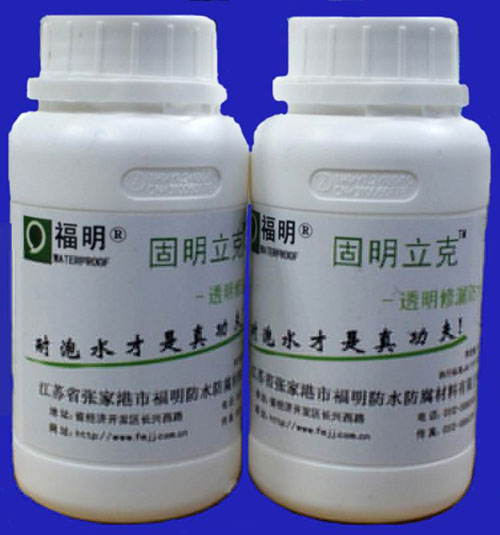 固明立克—透明修漏防水胶是由双组份液态交联反应固化而成的高分子透明防水涂料, 该产品无毒,对环境无污染,防水性能好. 施工后可固化成有韧性,又有耐久性的整体无接缝透明涂膜防水层。