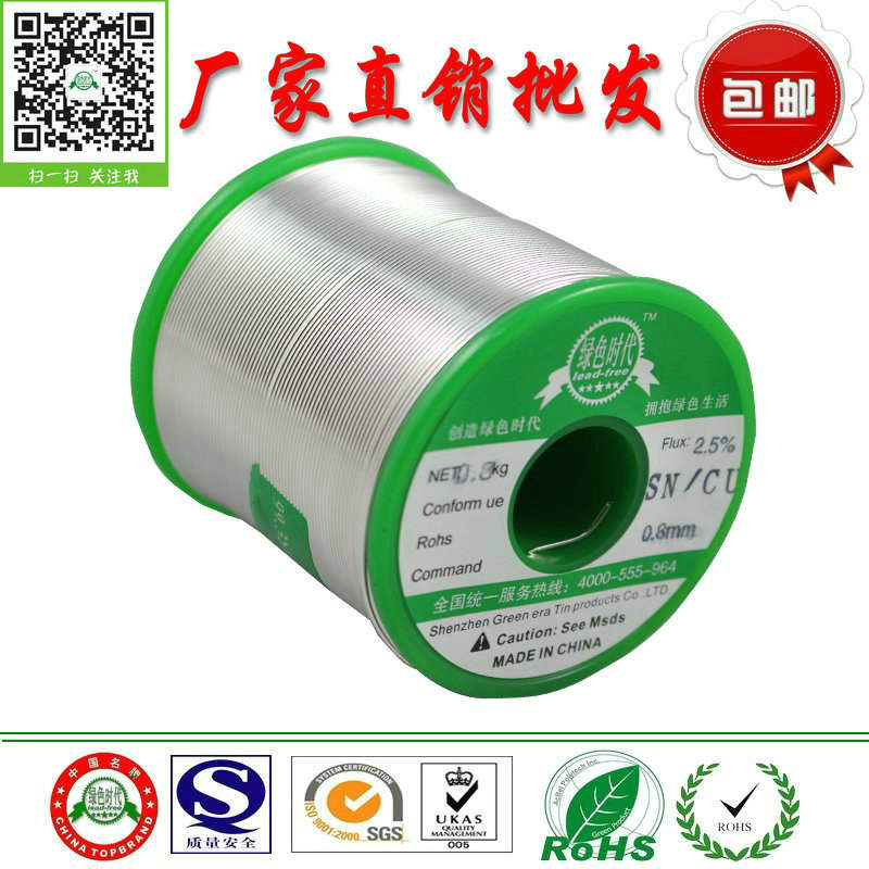 绿色时代牌产品均通过ISO9001:2008质量管理认证或ROHS环保认证,产品品质可达到众多企业品质要求,索尼、松下、飞利浦、三洋、富士康、奥林巴斯等大型企业的品质要求。我司现面向全国厂家,焊锡丝价格低至35元,焊锡条低至45/元,无铅环保焊锡低至118/元,全国统一免费送货上门,统一免费试样,也可按照客户要求订做生产。