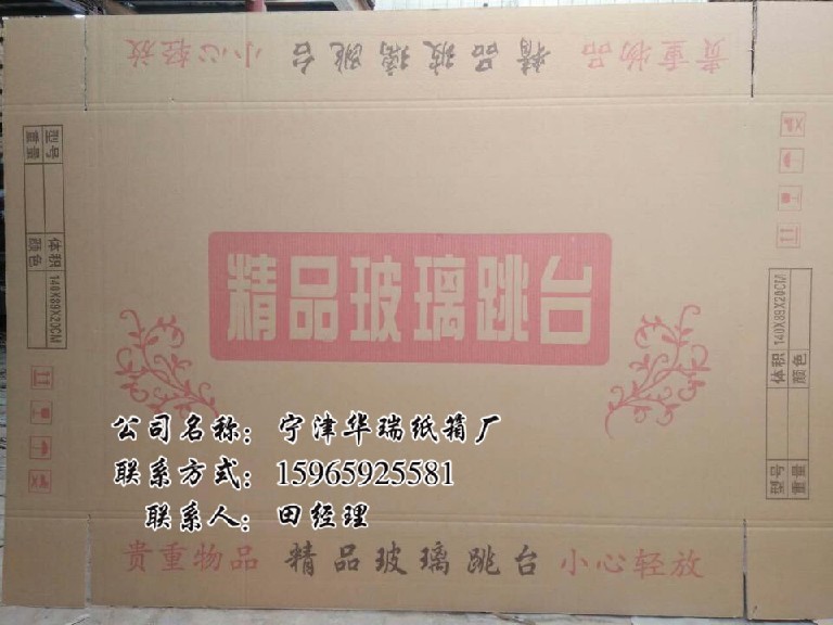 欲了解更多山东玻璃跳台包装纸箱,山西玻璃跳台包装纸箱,辽宁玻璃跳台包装纸箱详情请致电我们宁津县张大庄乡华瑞纸箱厂工作人员