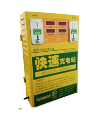 二、设备功能全智能化,操作简单,语音提示,无需专人值守适用于 24、36V、48V、60V、72V电动车电池,电池快充,自动电池电压识别.投币1元,充电10分钟,到时自停,可以行使5-10公里,电池可以待机10-24个小时,液晶屏显示各参数,钱币自动识别计时收费,每次充电最多投币12次充电120分.投币枚数:1-12元可以调整,时间10-120分钟可以设定。充电过程中:语音每分钟提示一次,正在充电;充电过程中,接头线脱落:语音提示输出线没有接入,请接入电源对电动车电池电压:能自动识别目前市场上24-72伏电动车,以及电池,进行自动充电。 能自动识别电动车充电站极性,自动识别正负极,进行自动充电。自动转入智能充电:充电过程中,自动检测电池电压,根据电压情况自动调节充电电流,从而实现智能充电。具有防错接、防反接、防漏电、防雷击等多重保护功能在充电的同时,对电池有修复和维护的作用 .可安装在墙壁及各种杆柱上,设备后面或侧面有固定设备的附件 .输出端接电池的插头有多种,适用常见的任何电动车电池的接入充电。 外观新颖别致、色彩醒目富视角冲击力,烤漆光滑平整。