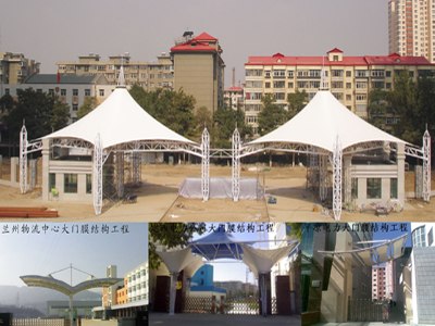 膜结构又叫张拉膜结构,膜结构建筑是21世纪代表性与充满前途的建筑形式。打破了纯直线建筑风格的模式,以其独有的优美曲面造型,简洁、明快、刚与柔、力与美的完美组合,呈现给人以耳目一新的感觉,同时给建筑设计师提供了更大的想象和创造空间。甘肃新博成膜结构技术有限公司凝聚了一批优质的膜结构专业设计、施工人才,技术力量雄厚。以严谨的施工组织,先进的制作安装工艺,过硬的施工队伍,可靠的信誉保障,在收费站膜结构质量、价格、服务上占有一定的竞争优势。