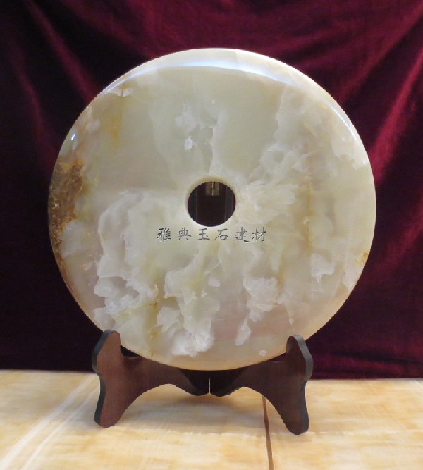 【产品名称】天然玉石平安扣、玉扣(配送三脚架) 【尺寸】 直径35cm加厚 【包装】 由于厂价直销,产品不配送礼盒!如需礼盒包装,需联系客服另外购买礼盒! 【产品寓意】又称为平安扣,怀古、罗汉眼,可祛邪免灾,保出入平安。是中国的一款传统玉饰品,从外型看它圆滑变通,符合中国传统文化中的“中庸之道”,古代称之为“壁”,有养身护体之效。在现代,常为情人间互赠之物,取平安之意。