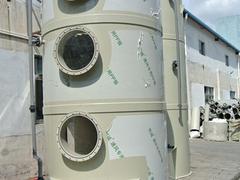 PP喷淋塔:广泛应用于工业酸,碱等废弃净化,是目前酸碱废气处理中最常用也最实用的一种处理设备,喷淋塔主要分为两种:填料塔和旋流塔。填料塔相对用途广泛,粉尘较多时可选用旋流塔,可根据空间大小定制圆形或方形喷淋塔。