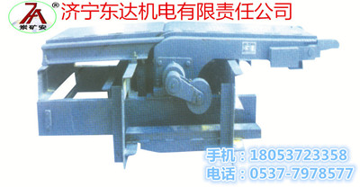 拖罐摇台技术特征 摇台为一段可摆动轨道,一端绕固定轴摆动,另一端当罐笼停好后摇尖搭接在罐笼边缘的导轨衬上, 摇台边接了罐内与车场中的轨道, 摇台便于矿车进出罐笼.当摇台抬起时, 摇台上最突出部的外形与罐笼间留有足够的安全间隙.摇尖的前端,工作时与罐内导轨衬搭接,摇尖铰接在摇臂上,可以自由转动一定的角度,摇尖的尾部设有配重,使其前部经常处于抬起状态.当由于事故摇台放下后,罐笼通过时,摇尖头部被撞向下旋转,而允许罐笼安全通过.摇尖和导轨衬的结构保证了摇台与罐笼搭接时,侧向能可靠定位,从而罐笼内外轨道不会错位,免发生矿车掉道事故.