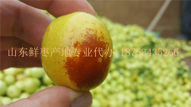 CY 山东鲜枣产地上市了,山东鲜枣产地供应商,山东鲜枣产地现摘现发,鲜枣基地批发价格。 欢迎走进我们果园,每颗枣子都是精心挑选出来的,早熟山东乐陵鲜枣外观漂亮,肉厚核小,口感酥脆、甜中带香,口感极佳、回味无穷。因其优良品质享誉国内外。客商争相前来采购。冰糖子鲜脆枣口感纯正,量大质优,其特点成熟后可带皮吃.外脆.里甜.,带有浓郁的脆甜香味,.比较好吃.,欢迎收购鲜枣的朋友来山东乐陵考察收购,我处提供红枣代办业务已有20多年,供应的鲜枣全部系枣园现摘,人工手摘精选,保证枣果个头均匀,无残果,烂果,次果。