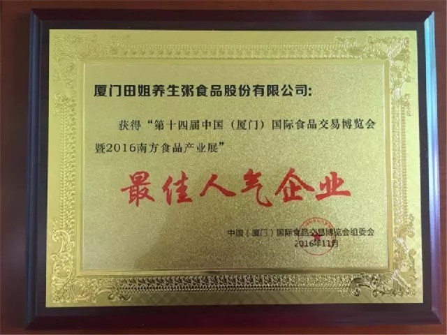 厦门田姐养生粥食品股份有限公司自成立以来,始终坚持“围绕质量抓管理,严格过程创优质,强化服务争信誉”的质量方针,严把产品质量关,为需求群体提供食用卫生安全美味的养胃粥,并以可靠的信誉赢得了广大消费者的信赖。公司地址莲前东路409号联丰大厦10C