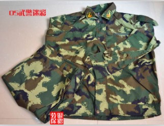 分夏、冬季两种迷彩图案。样式与士兵夏、冬作训服同。用料为维棉或涤棉平布。