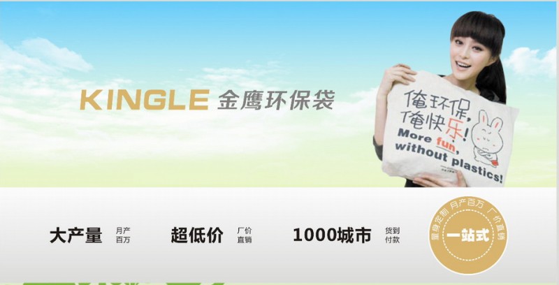 汕头市金鹰环保包装有限公司www.cnjinying.com,创立于2008年,集设计、印刷、生产、销售的一站式贴心服务,是中国无纺布环保包装制品的专业制造商,拥有现代化生产线,月生产环保袋200多万只的规模能力。 产品有8大系列:无纺布环保袋、复膜袋、PP无纺布拉链袋、PE拉链袋、三边封夹链袋、PVC袋、礼品袋和创意袋;环保袋的价值不仅在于包装产品和资料,更有提升品牌档次、宣传广告的作用,同时也为环保事业贡献力量。我们服务的客户有服装、食品、化妆品、金融、展览、商超、汽车等40多行业的大中型知名品牌,产业还远销欧美、韩国、东南亚、美洲等国外市场。   公司拥有经验丰富的技术团队、先进的生产设备、完善的配套设施,既有自动化生产线,也有人工车缝生产流水线;材料达到出口标准,印刷精美,完全符合欧美环保要求。公司始终秉承"以顾客为中心"的经营理念:旗下拥有一流的专业设计团队,每年根据客户的不同需求开发创新款式与生产;价格实惠、质量一流、交货快捷、服务周到!健全的供销网络为每一位客户最大限度节约成本;细致周到的售前、售中和售后服务换来老客持久、新客盈门。 我们的核心价值观是"引领品质超值的包装产品"。"诚信经营"是我们的立身之本,"服务周到"是我们的发展根基。我们竭诚欢迎广大客户垂询惠顾!