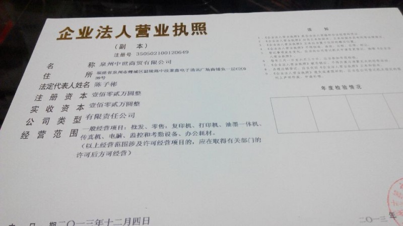 公司:泉州中世商贸有限公司