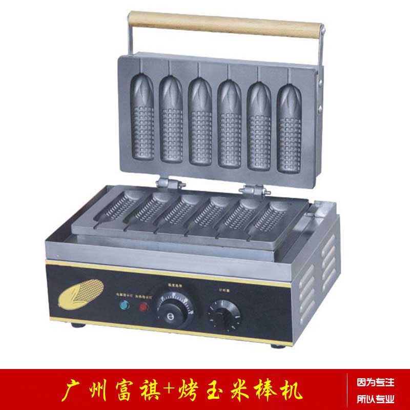 烤玉米棒机 Grilled corn machine 型号(Model):FY-111 产品规格(Packing size):380330310mm 包装规格(Dimensions):435x410325mm 电压(Volts):220V 功率(Power):1.5KW 净重(N/W):9.5kg 毛重(G/W):10.5kg 特性:玉米棒,玉米棒的成本低至8-9毛,出售价位3元,一次性3-5分钟能做6份,产量大,操作简单,原料简单,易购买,赚钱快,是目前最火爆,最流行的项目。玉米棒在澳门有多年历史,以玛芬粉为主要原料,在里面放进香肠,将它烘至外层松软,中间口感独特的热狗,遍布澳门街头,是澳门非常流行的小吃。玉米棒旋风正吹袭中国,风靡各大城市,风摩各学生群体,不需要高额的加盟费,最低廉的投资,最高额的回报,小小投资助你开创事业之路,面团掺有香葱末,玉米棒松软可口,外表金黄漂亮,外表似松饼口感,内里热狗肠.... 一,玉米棒机配方: 1、玛芬蛋糕预拌粉Ⅱ:1000g 2、沙拉油: 375g 3、全蛋(整个鸡蛋):375g 4、水:200g 5.脆皮热狗肠(双汇牌)。 二,玉米棒机配方制作方法: 将玛芬蛋糕预拌粉搅拌Ⅱ,沙拉油,全蛋(整个鸡蛋)和水搅拌均匀,用蛋料挤袋把浆料挤入预热好的玉米棒机的棒槽上,先挤入模型的一半,放入用竹签串好的热狗,再往上面挤入适当的浆料,烘烤3~5分钟即可。 广州市富祺食品机械有限公司,专业生产销售西厨设备,小吃设备,食品机械,酒店用品,快餐设备等:炸炉、扒炉、保温展示柜、无烟烧烤炉、汉堡包机、腌制机、裹粉台、滤油车、煮面炉、保温汤池、烤鸡炉、制冰机、中心岛、薯条柜、蒸包机、烤箱、6通道计时器、8通道计时器、煲仔炉、万能蒸烤箱、保温餐车、蛋糕展示柜、盘柜、冷柜、巧克力炉、关东煮、华夫炉、雪糕皮机、面火炉、板栗机、班戟炉、爆米花机、章鱼丸炉、鹌鹑蛋烤炉、棉花糖机、热狗机、冰淇淋机、果汁机、多士炉、开水机、豆浆机、沙冰机、奶昔机、封口机、摇摇机、碎冰机、咖啡机、香酥机、梅花酥机、圆圆酥机、蛋仔机、红豆饼机、松饼机、烤玉米机、鱼饼机、等等支持全国货到付款,质量保证。