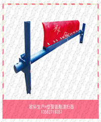 第二道聚氨酯清扫器:采用人字形清扫块,清扫块面平整成一平面,可有效清除残留皮带上之细粒,湿粘物料,缓冲座组合面积大,不断裂,不积料,可避免清扫块口崩裂损及皮带,也可用于逆向运转皮带。刀座下直立的缓冲弹簧组,可确保与皮带的良好接触和刮料效果。