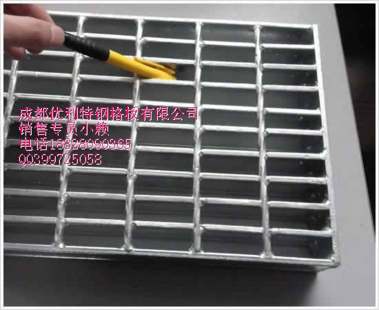 成都优利特钢格板有限公司主要生产钢格板、钢格栅板、镀锌钢格板、格栅板、钢格栅、沟盖板、踏步板、插接钢格板等。 我们集科研、生产、销售、服务为一体,多年来致力于钢格板的制作和研发,设备先进,技术力量雄厚,拥有成熟的工艺以及丰富的钢格板生产和安装经验。引进先进专业的CAD排版设计系统,采用国际化的生产管理模式,产品和服务符合ISO9001国际认证标准,畅销国内市场,深受用户好评,优良的售后服务体系,上乘的质量,最具竞争力的价格和最快的交货期,愿与新老客户建立良好的贸易关系,互惠互利,精诚合作,共创美好未来! 咨询QQ399725058联系电话18828090365。我期待,你选择!传真(FAX): 028-86641898 Web site: www.scggb.com