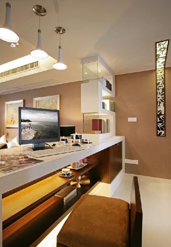 以白色为基调的空间里,做了米色的踢脚线设计,落地窗的砖型墙面在赋有现代风的客厅里没有显得太突兀,反倒像是融入了整个空间一般。
