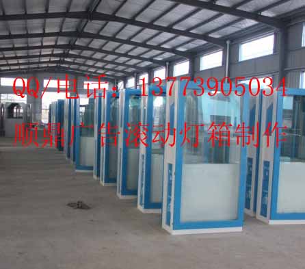 6、顺鼎滚动灯箱 该换画灯箱成本低、效益大。由传统的单一广告模式变为多画面,减少了广告占用位置,在寸土寸金的现代城市,极大地降低了成本,为广告市场带来了无限商机