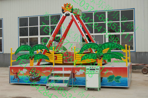 海盗船是一种全新设计的观览车类游艺机,是一种绕水平轴往复摆动的游乐项目。海盗船在启动后从缓慢摆动慢慢的急速摆动,乘客乘坐于海盗船之上,随着由缓至急的往复摆动,犹如莅临惊涛骇浪的大海之中,时而冲上浪峰,时而跌入谷底,惊险刺激,挑战你的心理承受能力的极限。迷你海盗船技术参数: 乘员:10人(可定做) 占地面积:4.2米*2.2米