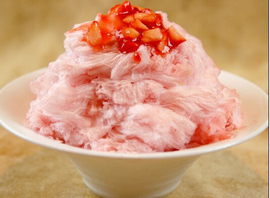从刨冰到绵绵冰,台式“冰”不断升级换代。清水做冰底的老传统一去不返,添加了牛奶等多种配料的冰虽然还有以前的温度,但冰的“骨头”却开始变软。用特制的刨冰机刨制之后,不再像雪花簌簌落下,反而如“棉絮”丝缕层叠,软、滑、细、薄、绵,愈来愈绵软的蓬松结构,让“冰”原本的冷硬质感彻底颠覆。奇异果、百香果和舌头玩猜猜看