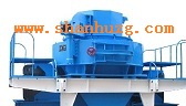 物料由机器上部垂直落入高速旋转的叶轮内,在高速离心力的作用下,与另一部分以伞状形式分流在叶轮四周的物料产生高速撞击与粉碎,物料在互相撞击后,又会在叶轮和机壳之间以物料形成涡流多次的互相撞击、摩擦而粉碎,从下部直通排出,形成闭路多次循环,由筛分设备控制达到所要求的成品粒度。