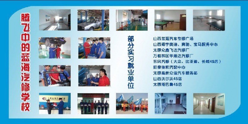 太原学汽修电控——要找最好的汽修培训就找蓝海汽修学校 对于我们开展的汽修培训如果有问题,可以致电:0351-7585220进行咨询,在这里需要注意的是我们客服的工作时间是:周一至周五。山西蓝海汽修专业学校位于太原市太榆路山西蓝海国际汽配城,创建于2009-06-01,是一家提供专业汽修培训的服务型股份有限公司。自成立伊始,蓝海汽修学校致力成为教育培训行业第一品牌,在多年的不懈努力下,已经卓有成效,并得到了业界的认可。 山西学汽修发动机,山西太原学汽修,晋城高中学汽修,大同太原学汽修费用 以下内容仅作为参考数据,以实际为准。 课程安排:上午机修、电器,下午电喷 服务条款:学习内容根据学员自身情况决定 科目:汽修机电一体化 授课方式:理论加实操 类型:专家咨询 服务标准:学员、家长、维修企业的满意是我们一致的追求 服务地区:山西太原小店区 服务周期:一年 机构性质:私立 适用行业:职业技能教育培训 服务理念:培养成品,打造精品;在校达到中级工,就业不再做徒工 价格:9600.00元(人民币蓝海汽修学校践行“以人为本”的教学理念,专业汽修技能培训,不开文化课,可试学的服务特色,以初高中职高中专毕业生之所需为我所求,不断打造适合新形势发展的汽修培训。在教学费用上是以项目计费的方式计算,支持当面交易的付款方式,从根本上解决学员的需求。蓝海汽修学校拥有101人左右的导师服务于各个学员,教给学员知识技能,所提供的汽修培训具有专业汽修技能培训,不开文化课,可试学的特色,受到众多学员的喜爱,是太原市一家较为知名的培训机构。 以下的,山西太原学汽修费用,晋城初中学汽修,大同太原学汽修学制信息应该对您有用 蓝海汽修学校作为个性化教育培训的践行者,我们致力于帮助初高中职高中专毕业生激发他们的潜能。通过发现学生的优势,弥补不足,激发学习兴趣,培养好的学习习惯,树立自信心。您可以通过公司网站了解更多相关内容。公司地址:太原市太榆路山西蓝海国际汽配城。 供应详情请登录我们的企业网站:了解更多一流的太原学汽修,职中学汽修电控,初中学汽修发动机,忻州太原学汽修学制www.tylhqx.com信息