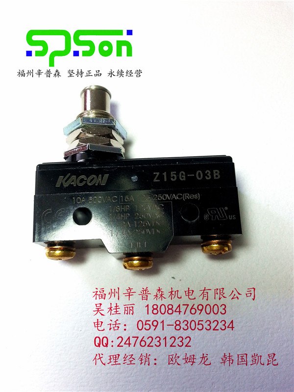 辛普森机电公司专注于为需求群体提供Z15G-03B,现有员工11人左右,欢迎广大新老客户来电咨询,联系人吴先生,联系方式18084769003 如果您对我们的具有品牌的Z15G-03B,凯昆微动开关价格如何,KACON微动开关品牌好,凯昆微动开关哪家最好www.fzxps.com感兴趣,请随时登陆本公司网站详细了解
