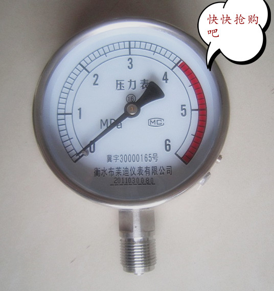 不锈钢压力表价位_最知名的不锈钢压力表品牌推荐 布莱迪仪表公司现在主要推广不锈钢压力表。我们会在您下单之后尽快发货,确保您的货物能及时、完好地送到您的手上。在客户没有特殊要求前提下,默认采用陆运的方式对货物进行快速安全的配送。 自创立之日起就重视服务体系的建立和重视服务团队的培养。经过多年的发展,布莱迪仪表公司已经拥有完善的服务体系,为客户提供最全面、本地化的有效服务和应用支持。我公司的不锈钢压力表主要采用网上销售的方式销售,通过陆运等方式把产品送到客户手中。 功率:220V 不锈钢压力表品牌:布莱迪 生产地址:衡水市武强县 生产厂家:衡水布莱迪仪表有限公司 用途:准确的测试压力 运费:卖家承担 产品等级:高级 产品别名:耐腐蚀压力表 维修地址:衡水市武强县 价格:75元(人民币) 类型:不锈钢压力表 服务地区:全国 价格合理的不锈钢压力表,不锈钢压力表代理商,不锈钢压力表价格,不锈钢压力表价格超低 更多相关内容,欢迎来电详询。 衡水布莱迪仪表有限公司位于衡水市,主营不锈钢压力表。公司秉承“顾客至上,锐意进取”的经营理念,坚持“客户第一”的原则为广大中小企业提供优质的不锈钢压力表与服务。有需求的客户可以通过拨打15333381970联系我们,联系人王经理 公司经过多年的运行发展,已形成了自有的产品营销方式,生产的不锈钢压力表主要是以网上销售的方式销售,产品种类齐全,主打Y100F型号,选择我们的产品,你可通过银行转账等方式付款,我们会在当天内将产品为您发送。 继续往下走,瞧瞧更多,不锈钢压力表代理加盟,不锈钢压力表价位,不锈钢压力表价格如何的信息衡水布莱迪仪表有限公司销售的不锈钢压力表质量秉承了一贯以来的可靠性和稳定性,我们拥有专业的技术支援,为中小企业提供全方位的售后服务。能够得到客户给予的支持和关爱,是我们的荣誉,也是我们发展的动力。布莱迪仪表公司愿与广大新老客户一同携手共创美好的明天!联系方式:15333381970 以上就是价位合理的不锈钢压力表,供应不锈钢压力表,不锈钢压力表代理,不锈钢压力表价钱如何,www.hbbulaidi.com的信息,谢谢