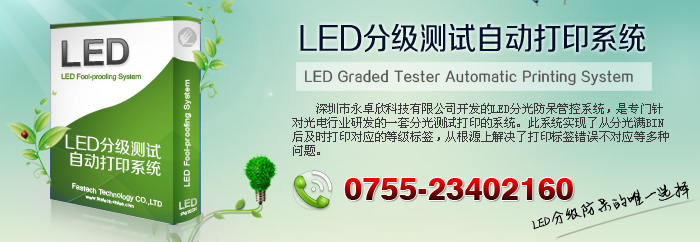 深圳市永卓欣科技有限公司开发的LED分级测试自动打印系统,是专门针对光电行业研发的一套分光测试打印的系统。此系统实现了从分光满BIN后及 时打印对应的等级标签,从根源上解决了打印标签错误不对应等多种问题。