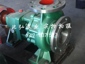 IH型卧式化工离心泵是单级单吸(轴向吸入)耐腐蚀离心泵, 供输送不含固体颗粒、具有腐蚀性、粘度类似水的 液体,供输送不含固体颗粒具有腐蚀性、粘度类似水的液体。泵盖通过止口固定在中间支架上,然后通过泵体与中间支架止口的联接把泵盖夹紧在中间,泵体是轴向吸入,径向排出,脚支承式,可直接固定在底座上。悬架部件通过止口固定固定在中间支架上,并用悬架支架支撑在底座上。为拆卸方便,设计了加长联轴器,检修时可以不拆卸进出口联接管路,泵体和电动机。只需拆下联轴器的中间联接件,即可退出转子部件进行检修。这是国际上通用的一种结构形式。化工泵的旋转方向:泵通过加长联轴器由电动机直接驱动,从电动机端看,按顺时针方向旋转。
