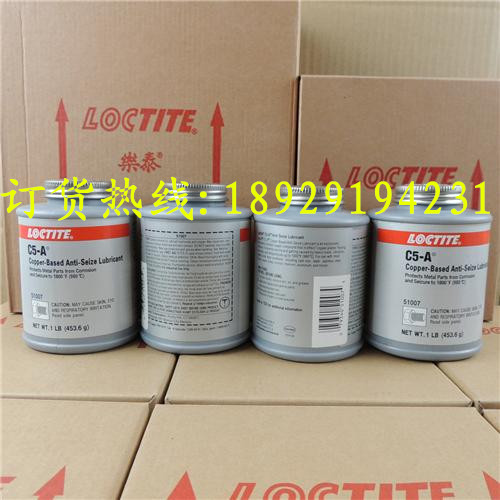 供应乐泰C5-A铜基抗咬合剂,深圳乐泰胶水有限公司,货到付款。订货热线18929194231/0755-85227226联系人:杨小姐。QQ在线咨询1537968782。乐泰C5-A铜基抗咬合润滑剂,该产品在高性能特重润滑中含有铜和石墨。可在-29度至+982度下保护金属部件,防止生锈,腐蚀,磨损及咬合的发生。经MIL-PRF-907E测试。本品能够保护金属零部件防止生锈、腐蚀和磨损,适合高温应用。本品能抵御达982℃的高温,便于金属零部件的安装和拆卸。使用本品时拧出3mm,涂胶后重新盖上。本品含矿物油成份,只适用于工业用途。包装规格:453.6g。本公司是汉高乐泰在大陆地区代理商,其高品质的产品、周到的服务、合理的价格赢得了众多用户的认可。汉高乐泰是世界专业工程胶粘剂的市场领导者,其业务已遍及全球八十多个国家和地区。乐泰胶水广泛应用于电子工业、汽车装配、机械设备等领域。富升胶业自创立以来就专注于胶粘剂的研发、生产、销售和服务领域,致力于为客户提供全方位的解决方案。我们坚持以“质量第一、价格优惠、客户至上、服务周到、让利客户、薄利多销为原则,诚信经营是我们永远不变的宗旨,精益求精是我们一贯的追求,公司以立足国内为永恒不变的目标,创新自我,追求卓越品牌,以最好的产品质量、最优惠的价格、最完善的服务来满足各界客户的期望.热诚欢迎各界朋友前来洽谈业务!咨询网址www.loctite-china.com,QQ在线服务1537968782,订货电话0755-85227226,销售热线18929194231。18028268555。欢迎新老客户来咨询采购,我们谒诚为您为服务!