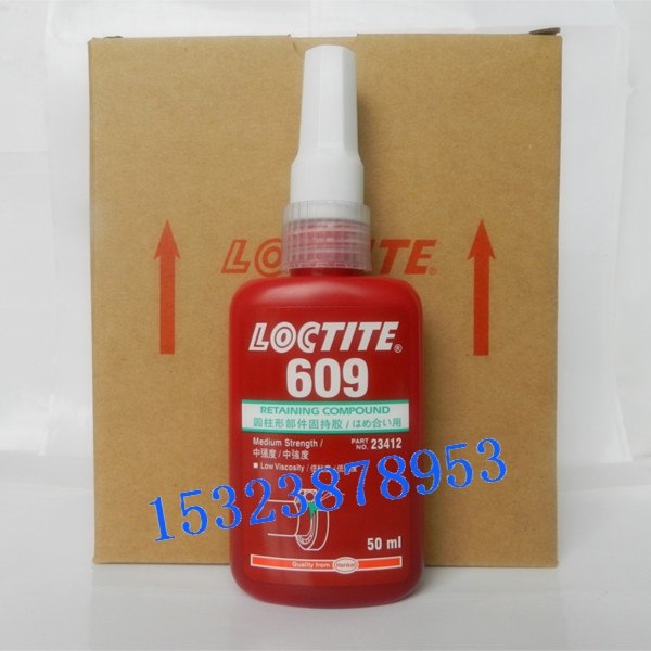 LOCTITE汉高乐泰609胶水、乐泰609圆柱形固持胶,低粘度,高强度,适用于过滤,过盈配合,固持键与轴,轴承,小电机转子轴,衬套,提高温配合的配合强度,修复磨损的孔一轴配合件或超差的零件。最理想的径向填充间隙为0.13mm以下,24小时后能提供21MPa的剪切强度,可以方便地栓不同金属材料的零件,能承受温度至149度。