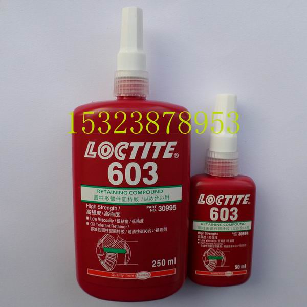 LOCTITE汉高乐泰603胶水、乐泰603圆柱形固持胶,容油性,一种具有容油性及其他污染物的通用型高强度固持胶,密封并固持圆柱形零件总成,其最大填充间隙为0.13mm。在30分钟内初固化,能防止微振磨损及金属配合件间隙的缝隙腐蚀。