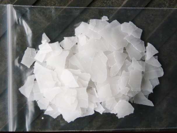 物化性质 纯品为无色透明晶体,相对密度2.130。熔点318.4℃。沸点1390℃。市售烧碱有固态和液态两种:纯固体烧碱呈白色,有块装、片状、棒状、粒状,质脆;纯液体烧碱为无色透明液体。固体烧碱有很强的吸湿性。易溶于水,溶解时放热,水溶液呈碱性,有滑腻感;溶于乙醇和甘油;腐蚀性极强,对纤维、皮肤、玻璃、陶瓷等有腐蚀作用。与金属铝和锌、非金属硼和硅等反应放出氢;与氯、溴、碘等卤素发生歧化反应;与酸类起中和作用而生成盐和水。保存固体氢氧化钠时要注意把封严,防止暴露在空气中吸收水分潮解或与二氧化碳。在用玻璃瓶盛放片碱或者其他形态的氢氧化钠时,不可用玻璃塞,应换用胶塞,因氢氧化钠会与玻璃中的二氧化硅反应生成硅酸钠导致瓶塞与瓶体粘接不易打开