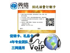 商家产品促销需要礼品,一般的礼品价格高也无实用性,话费卡作为礼品是个商家最佳的选择,因为礼品的价值有传统电话的资费作为价值参考,实际网络电话的成本不到传统电话的十分之一。卡面添加商家信息,高成交率及商家和顾客的黏贴度。