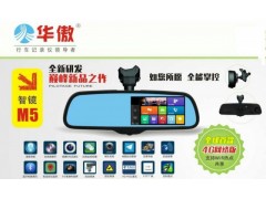 华傲智镜M5超强多功能后视镜一体机震撼上市,声控导航,前车预警,在线听歌,前后双录像,专车专用后视镜