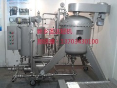 圆盘式硅藻土过滤机: FOM80 水平圆盘式硅藻土过滤机(3—20平方)是我公司在引进士 FILTROX 公司制造技术的基础上,通过消化和吸收国外新的过滤技术和制造工艺,并根据国内实际现状研制和开发的,用于白酒、果酒、饮料、酱油和醋以及医药、化工等方面液态制品的澄清过滤。它具有过滤周期长、效率高,过滤质量稳定,滤液损失少,自动化程度高和配置齐全等特点;本机结构紧凑,操作方便,性能可靠,移动灵活,易于维护,是生产优质液态制品厂家的优选设备。 特点 1、完全选用优质的耐酸碱不锈钢和食品级密封,罐体内外表面全自动机械抛光; 2、水平放置而无需纸板的过滤盘,采有锥形筋片式结构,可完全实现自身支撑;且采用高强度的双面织不锈钢丝网,表面光滑易清洗,整体刚性坚固可靠,使用寿命长; 3、本机可以进行间歇过滤,而滤饼不会脱落,有利于生产安排,电力故障不成问题; 4、设有酒尾过滤系统和残液排放管路,滤液损失可达到最小; 5、本机所选用的计量泵为隔膜式计量泵,它是采用国外技术生产而成,其结构简单,计量精确,且可根据待滤液的混浊程度,随时调节硅藻土等助滤剂的添加量。 6、废硅藻土采用自动控制清洗排放,节水省时; 7、配备齐全,可根据需要移动位置,使用方便,安全可靠; 联系人:郑刚 13703430100